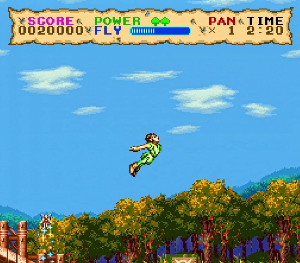 Gameplay wise, Peter initially feels a bit stiff and slippery, and when Peter jumps it feels like he is on the moon. Peter’s control is not a tight as, say Mario or Mega Man, but after a while I got use to it and actually enjoyed them. Flying on the other hand is really cool. Once you find Tinkerbell flying around, you collect some dust in your meter and can take off into the sky. The animation really captures the freedom I felt when flying around.