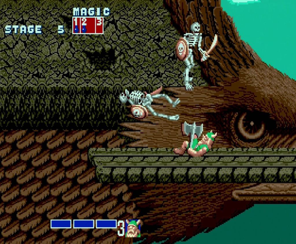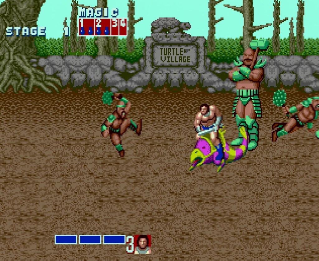 Anyhow, this game is about as stereotypical as it gets for fantasy beatemup games – which is not a bad thing! You start off by choosing from one of three scantily clad heroes and starting your adventure to revenge your family by killing Death Adder. Gameplay is simple. You (and your teammate if you play 2-player) must destroy your enemies by slashing, jumping, and using magic. You can also do dash attacks and cool dodge moves which look pretty cool. Enemies are fairly generic including armoured grunt enemies, skeletons, and giant asian sumo wrestlers with giant hammers (who like laughing at your failures). The game is not terribly difficult and I usually make it to the last boss (but I have never actually beat him!)