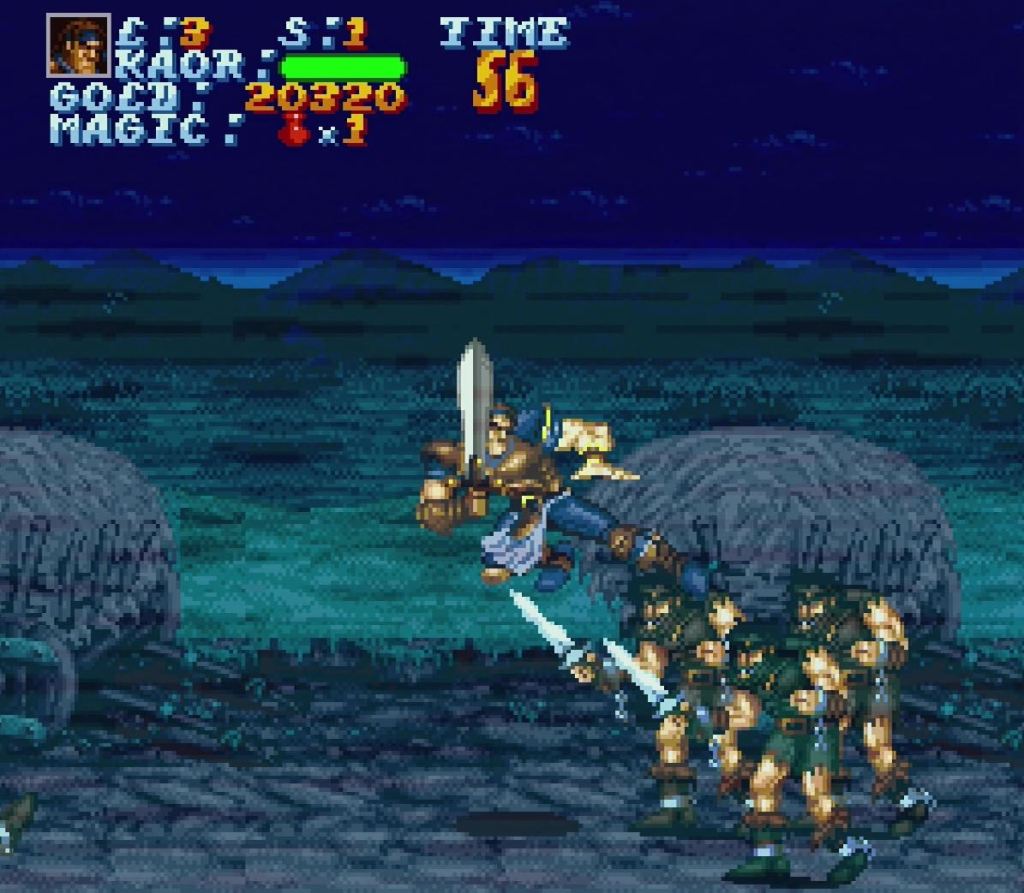 While I always played this game two player (and never got far) – for this review I gave it a try on one player and surprisingly beat it! I found that using the jump kicks and conserving magic for the bosses was the boon of my journey. Overall, its not excessively hard and is usually fair. The enemy bosses on the other hand can be quite challenging (especially the first and second bosses) – they can sometimes grab you and break through your shield which makes it almost impossible to evade attacks.