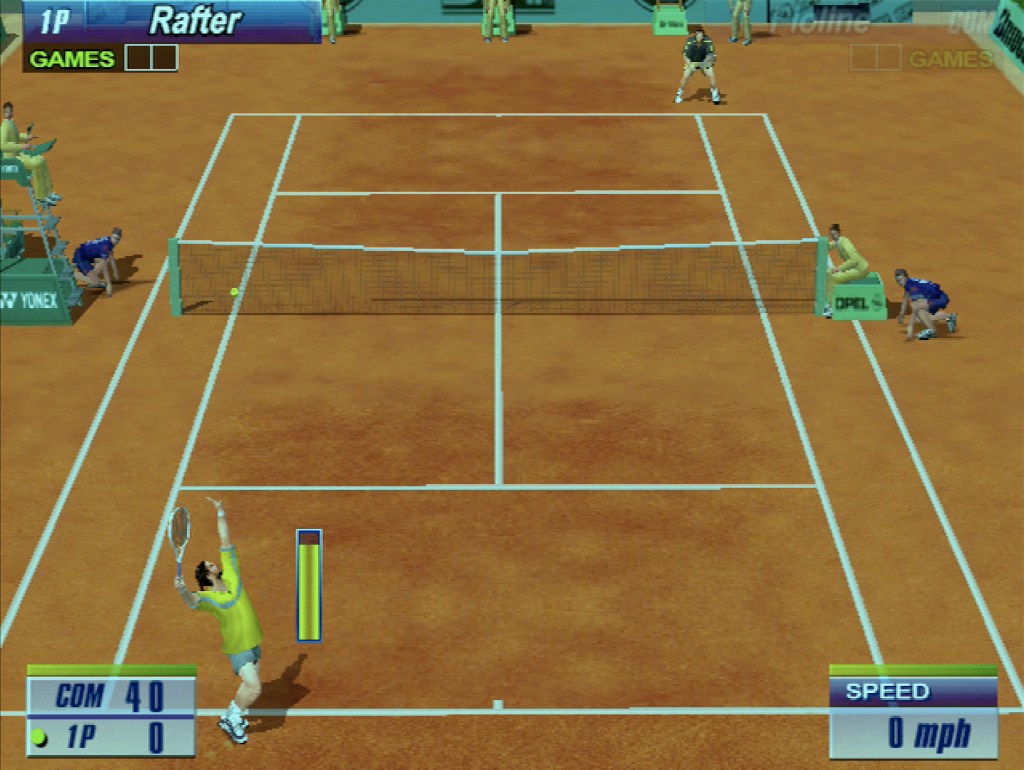 In terms of graphics, this game looks fantastic for a Dreamcast game. The character models looks realistic and the animation is top notch. When I first saw the game back in high school, I thought it looked real! The courts all look excellent too with lots of detail! The ball is really easy to see too as there are cool trails and explosive graphics to make it stand out. The game also runs very well with minimal to no slowdown, which is important as that would dramatically effect the playability of the game. The music is fun and upbeat and works well in keeping the tension high during the game. The sound effects on the other hand are excellent – each time the ball contact the racket during the swing, a satisfying sound is played making the player really feel like they are hitting the ball! The announcer is very vocal but sounds a little to robotic for my liking.
