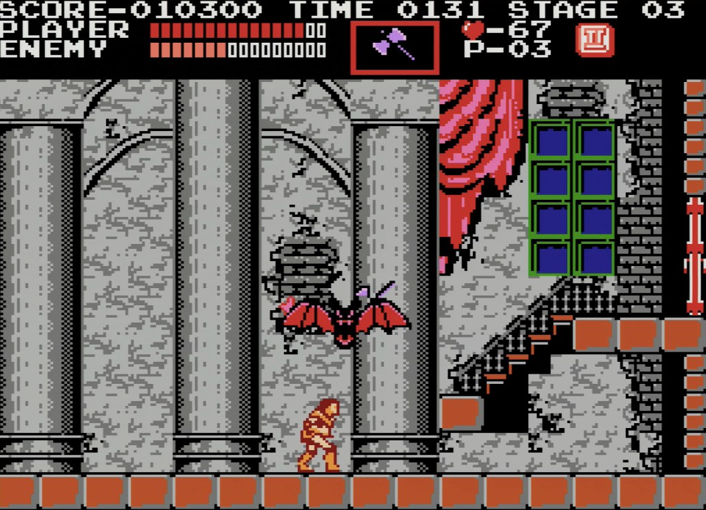 In summary, this action platform game is fun and challenging but feels a bit dated with its archaic jumping mechanics. It’s certainly not the best Castlevania game on the NES (I’m looking at you Castlevania 3), but still charms with its awesome music and cool bosses. Overall, I give this game a 7/10, with the caveat that it receive the historic videogame tag for initiating such an awesome franchise.